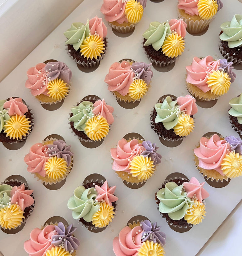 Perfectly bite-sized and beautifully decorated, our mini cupcakes are the ideal sweet treat for any occasion. Each one is topped with a swirl of smooth buttercream and finished with delicate details for that extra special touch.
